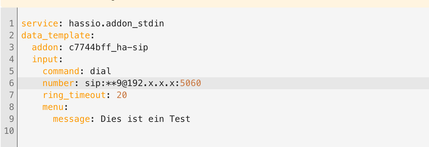 Ich habe das HA-Sip Add-on nach einigen “Herausforderungen” dazu bewegen können, meine Fritzfone zum läuten zu bringen. Allerdings bekomme ich nicht die Nachricht übermittlet, wenn ich abnehme. Ich habe es mit Google_translate und Piper versucht, aber es kommt keine Nachricht, nur manchmal ein nerviger Pfeifton.