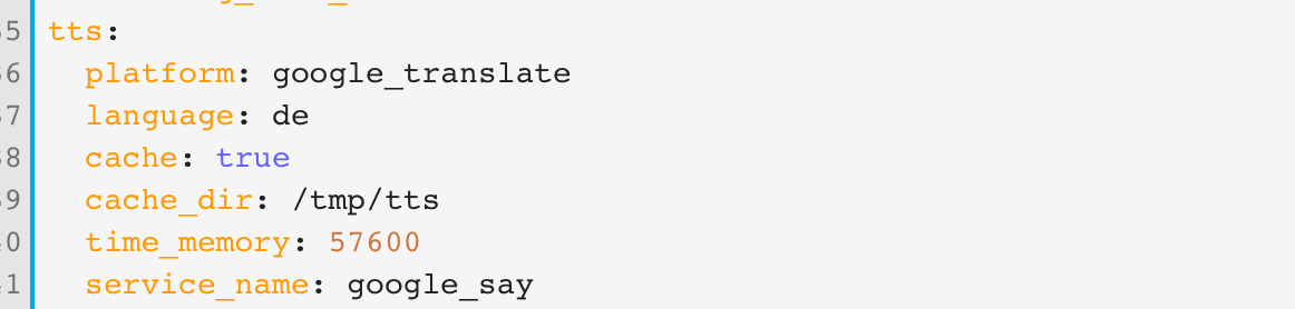 In der Konfiguration habe ich wahlweise unter tts folgendes eingetragen: