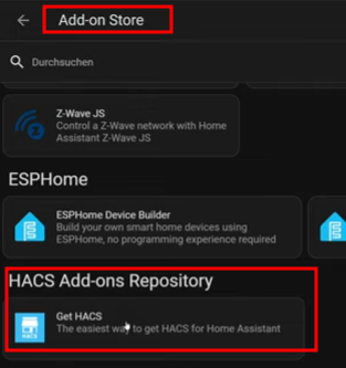 Du scheinst da die beiden Varianten der HACS Installation ein wenig durcheinander zu bringen. Wenn Du das HACS Repo manuell hinzugefügt hast dann solltest Du jetzt im Add-on Store - nach einem Reload Strg + F5 davon - das im Add-on Store auch sehen.