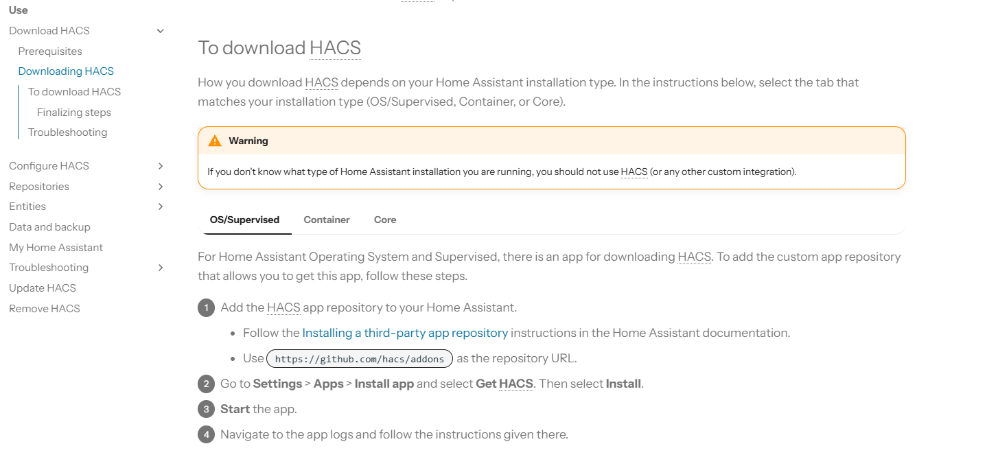 Hi, ja das Video habe ich mir natürlich angeschaut, aber wenn ich hacs.xyz eingebe, dann sehe ich eben NICHT unter downloading HACS den Button mit “my link”, wie im Video beschrieben.