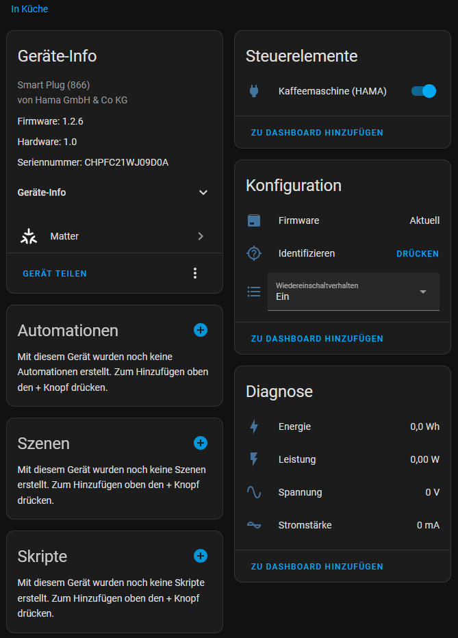 Ich habe aktuell drei HAMA-Steckdosen der Modelle 176939 via Matter in HA eingebunden.