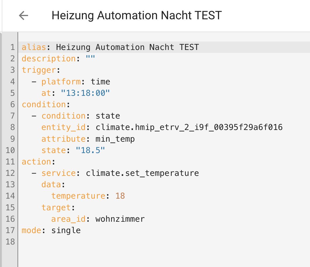ich starte mit dem Einrichten von Automationen und wollte gerne eine Automation erstellen, die um 0 Uhr die Thermostate auf 18 Grad senkt, wenn diese über 18,5 Grad Zieltemperatur eingestellt sind.