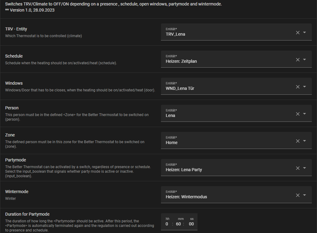 Diese Intransparenz von BT hat schlussendlich dazu geführt, dass ich nun BT nicht mehr nutze, sondern meine TRVs direkt mit einer selbst erstellten Automation/Blaupause (mit Zeitplan, Fenstersensor, Wintermodus, Partymodus & Anwesenheit) steuere.