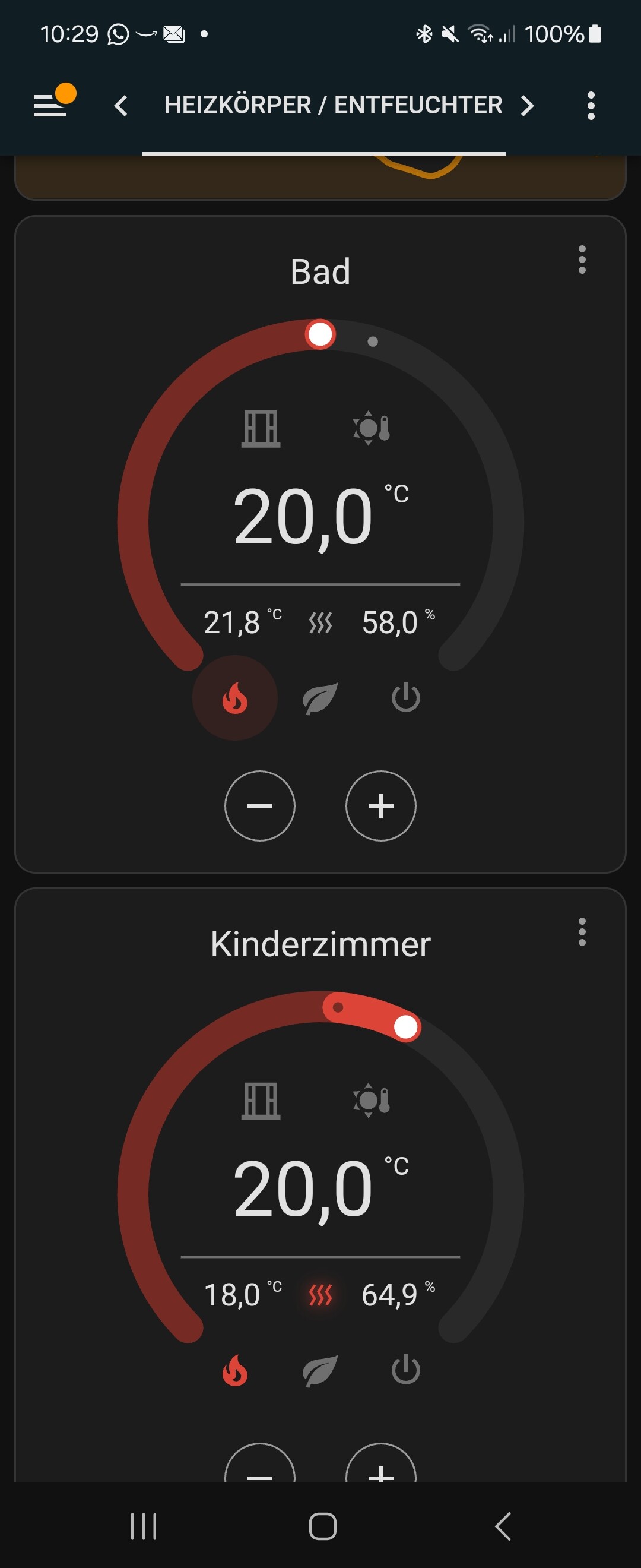 soweit ich das sehe kann, hat dein BT doch abgeschaltet - die in der Mitte sichtbaren “Hitzewellen” sind weiß (im Gegensatz zum Symbol des Kinderzimmers, wo sie noch orange gefärbt sind). Der Zustand “heizen” bleibt im BT aktiv. Allerdings sollte sich der Zustand des eigentlichen TRVs ändern.