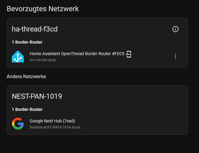 Irgendwo ein anderer TBR, der reinfunkt? (Temporär ausschalten). Anhand des Namens des Thread Netzwerks kannst du Rückschlüsse ziehen, welches Gerät das Netzwerk ausgibt…