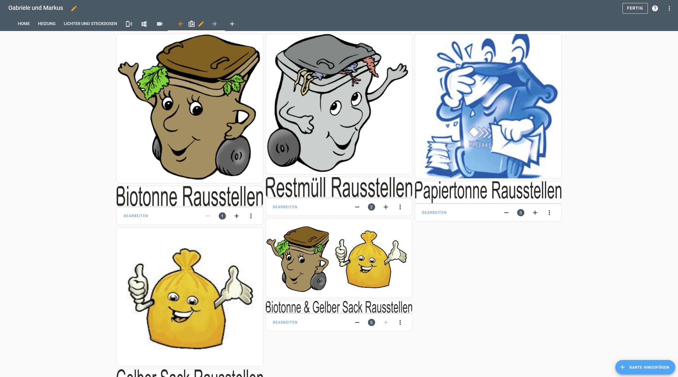 Verwende eine Dashboard Karte für die Anzeige Müll auf meinem Tablet.