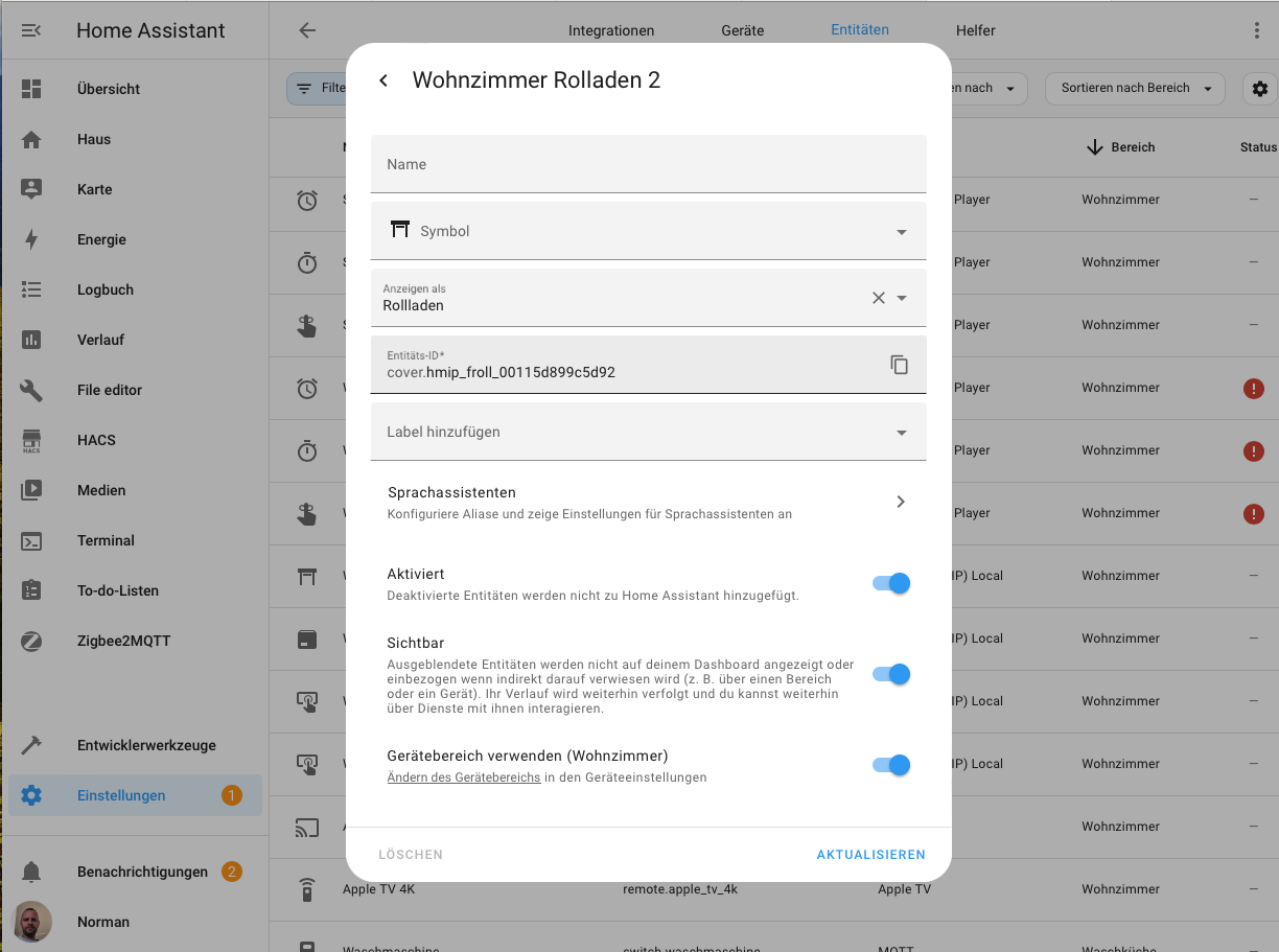Wie kann ich denn den richtigen Namen meines Rolladens auslesen um ihn hier eintragen zu können?