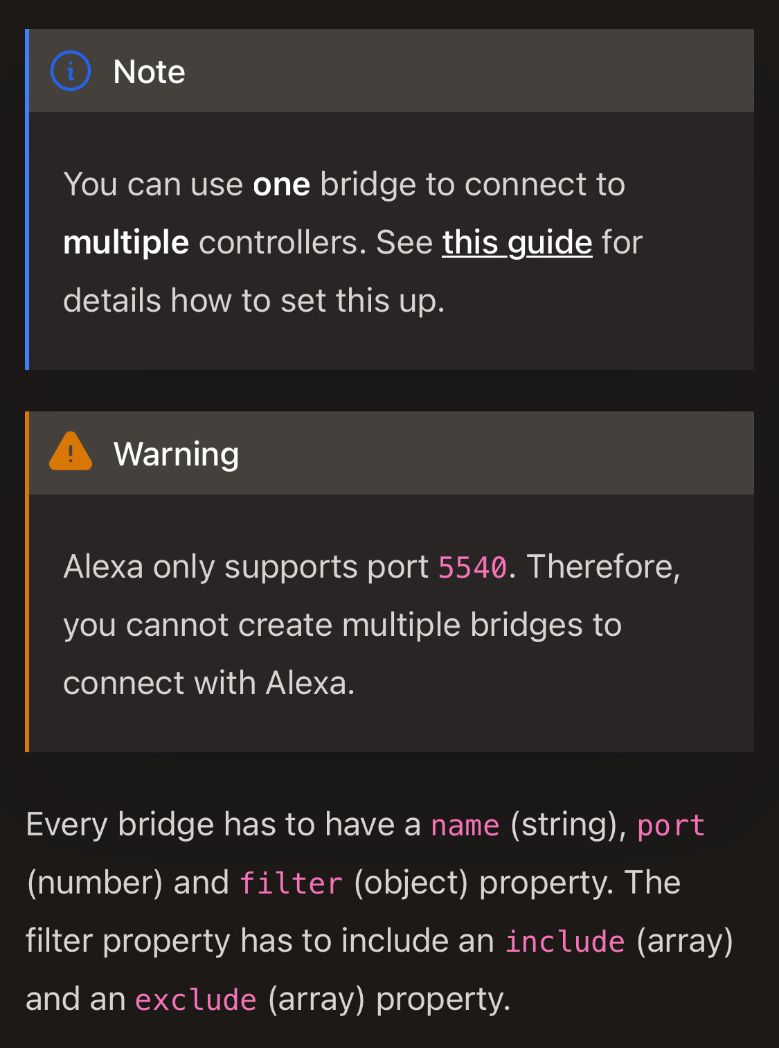 Alexa „versteht“ die Bridge nur auf Port 5400. sonst nicht. Also wenn ihr einen anderen Port, oder mehrere Bridges mit unterschiedlichen Ports mit Alexa verbinden wollt, geht das nicht.