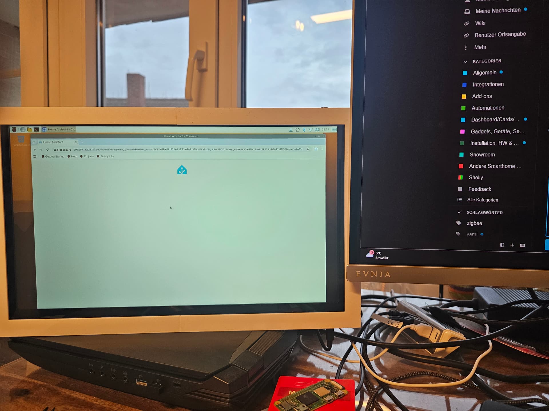 tja nun das Problem, alles schön und gut aber ich komme nicht weiter ich dachte erst es liegt an touchkio selbst aber nein auch im Browser selbst (ich habe vor diesem Bild das Pi OS neu geflasht um alles nochmal sauber zu haben) komm ich nicht weiter als auf das Logo kein Login nix. Wahrscheinlich für erfahrene HA Nutzer wie euch irgendwo ein Haken setzten aber ich weiß es nicht und google war bisher auch nicht hilfreich.