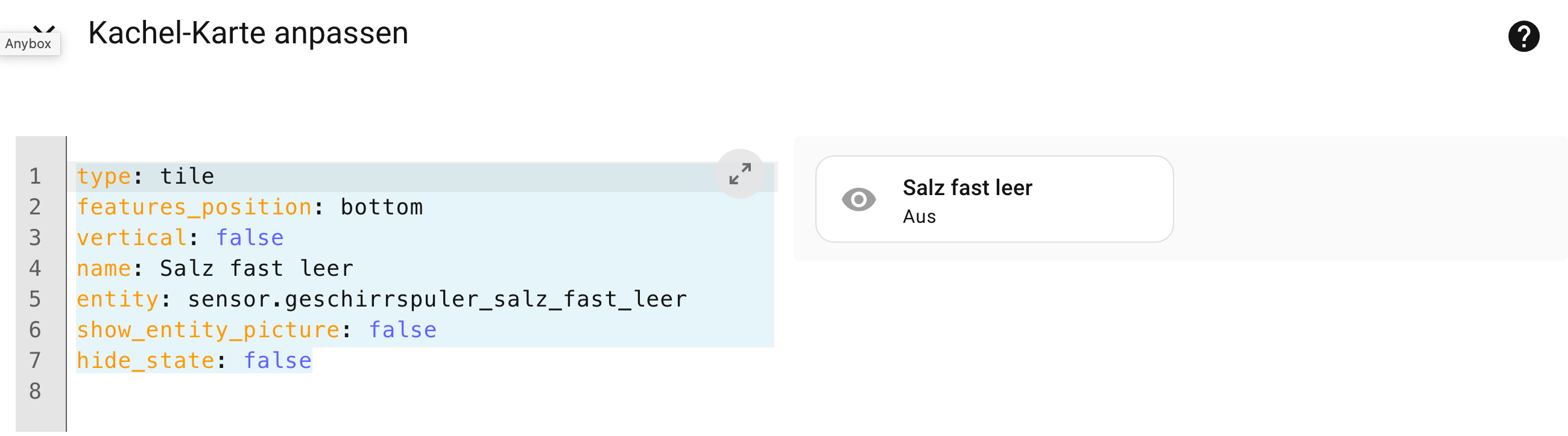 - name: "Geschirrspüler Salz fast leer (Ja/Nein)"