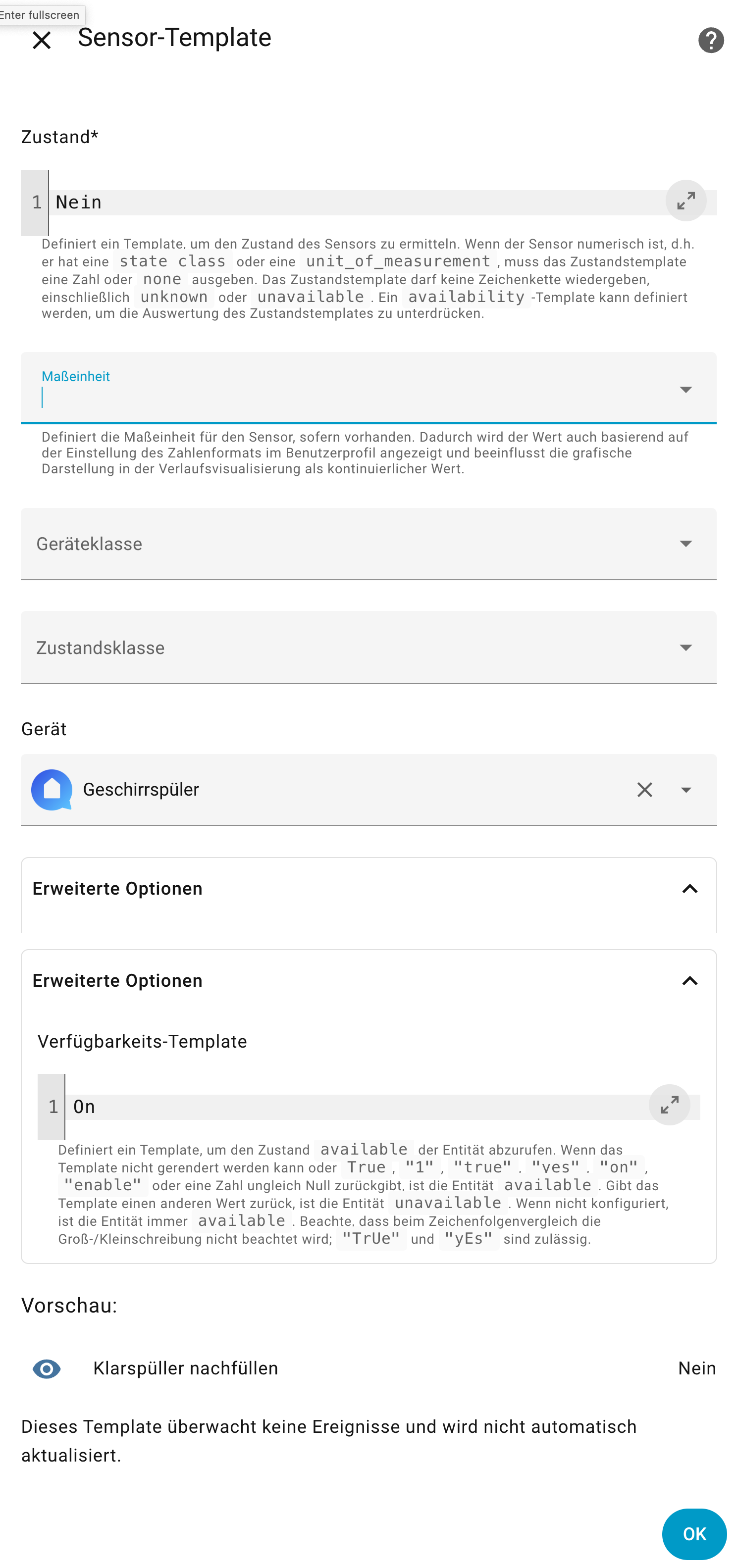 Gehe ich richtig in der Annahme, dass mit der Erstellung des Template Sensors via UI das Erstellen eines Helfers gemeint ist? Falls ja, dann erschließt sich mir noch nicht ganz wie ich das korrekt umsetze.