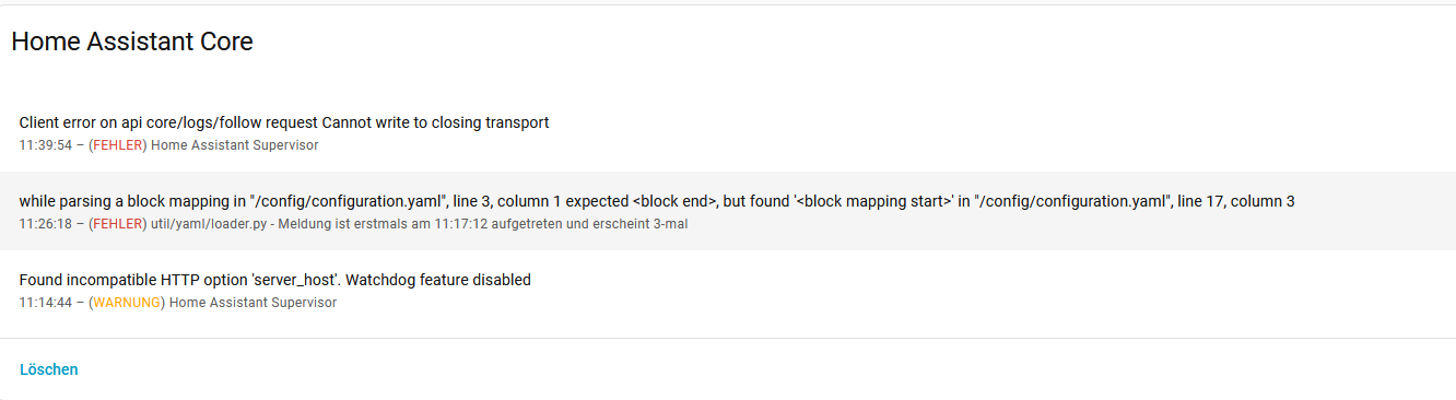 So sieht meine Homeassistant aktuell aus und nichts geht mehr….