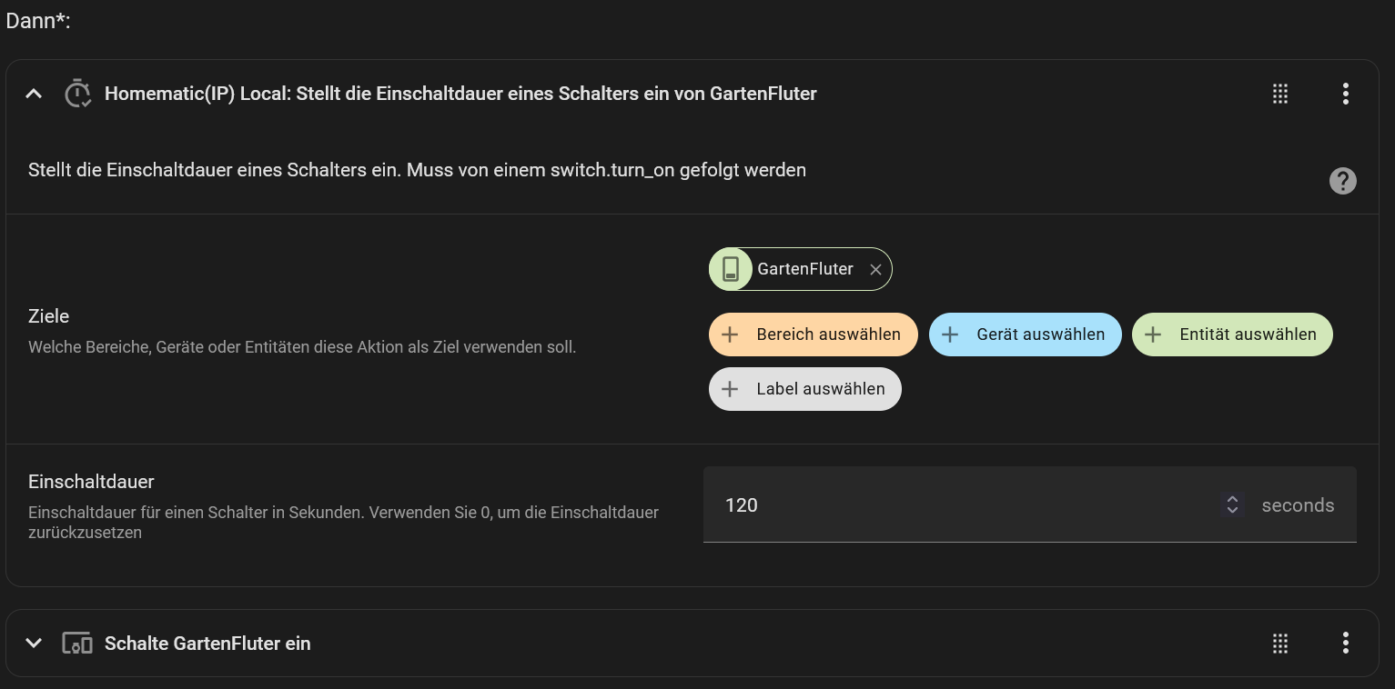 Und: Ich habe meinen Beregnungsablauf in Node Red aufgebaut. Kann ich da auch die Aktin “on-for-timer” übergeben?