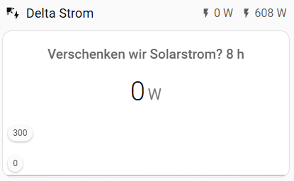 Das funktioniert auch mehr oder weniger. Und genau dieses weniger ist mein Problem - manchmal rutscht der aktuelle Verbrauch zum Beispiels ins Minus. Dies vorallem, wenn kleine Sprünge da sind: Sonne/Wolken. Oder aber auch Staubsauger etc. Ist ja irgendwo durch auch logisch: Die beiden Werte werden nicht zur absolut gleichen ms gemessen. Ich vermute, HA rechnet einfach neu sobald einer der Werte sich aktualisiert und nimmt für den anderen den letzten verfügbaren oder?