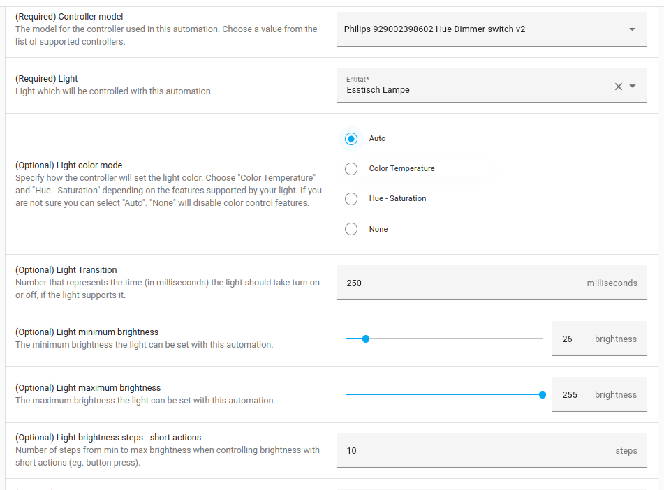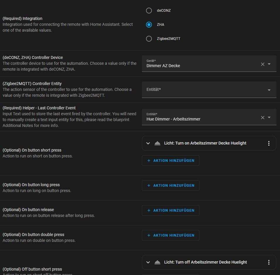 Der verlinkte Blueprint funktioniert auch mit diesem Dimmer. Ich verwende diesen zum steuern von Musik. Die Bilder von mir sind zwar von der Version 2, aber es ging ja um die erforderlichen Einträge.