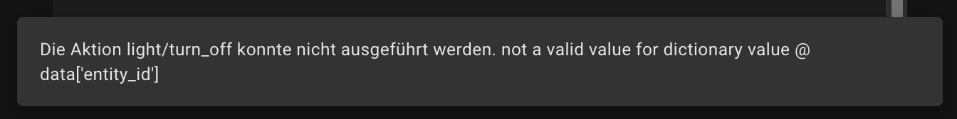 Ich habe mittlerweile auch herausgefunden wieso es zu diese Fehlermeldung kommt. Wenn beim erstellen der Gruppe in der Vorschau der Schalter betätigt wird gibt es die Gruppen-Entität ja noch gar nicht und die Aktion light.turn_on kann nicht funktionieren.