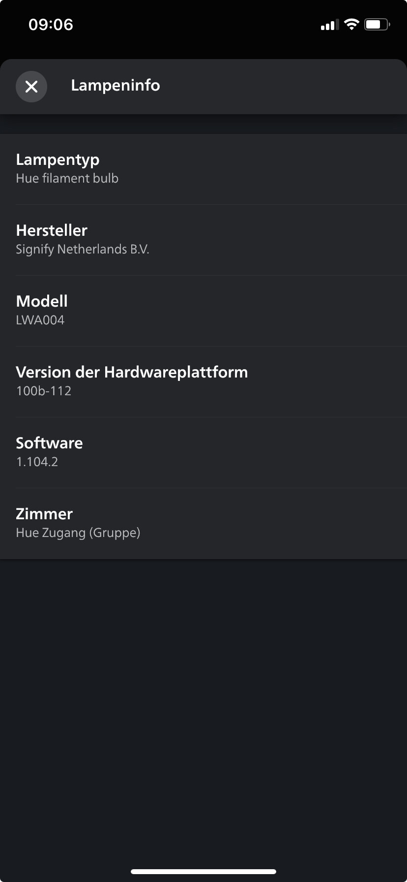 Anbei die Hue App: