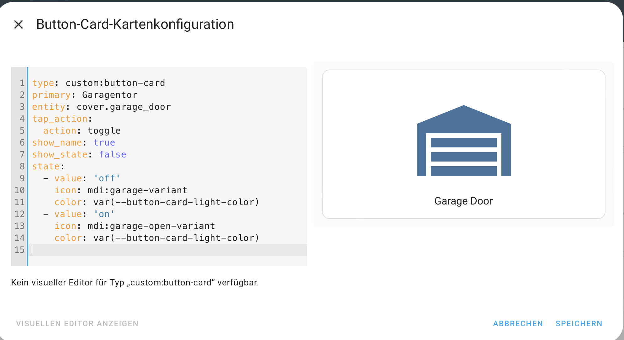 ich hab mir einen Button für das Garagentor in der Configuration.yaml zusammengestellt, das einen Torkontakt und gleichzeitig den Taster auslöst.