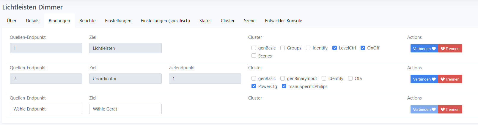 i.d.R. kann man LevelCtrl (dimmen) und OnOff binden.