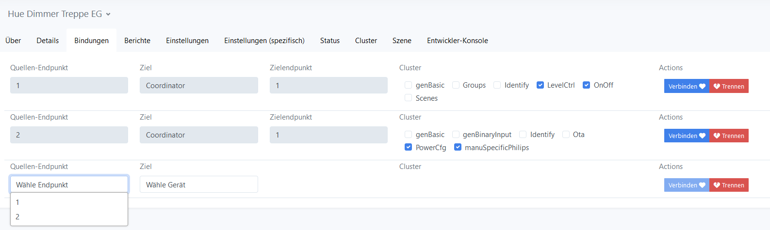 Was bedeutet Quellen-Endpunkt Ich habe da z.B. für eine HUE-Dimmer (ich denke V1) 2 Stück zur Auswahl.