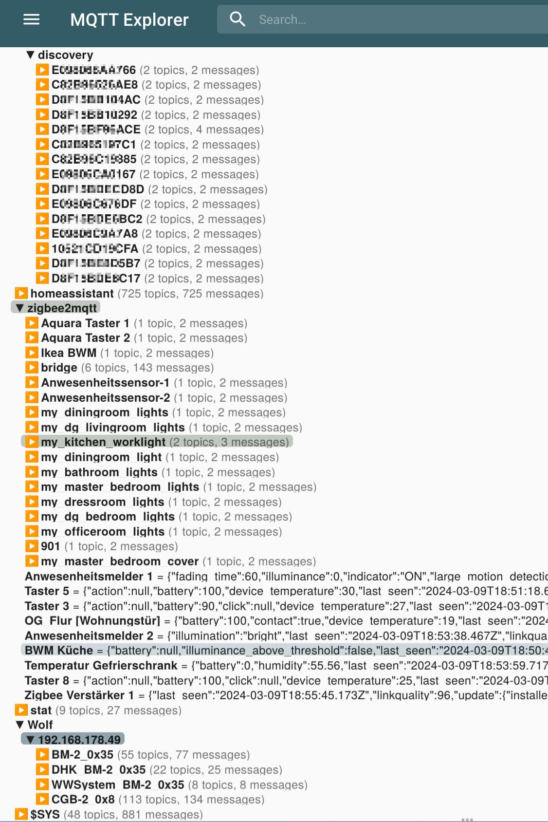Hier mal eine Übersicht über einen Mosquitto in dem ich verschiedene Geräte schreibe.