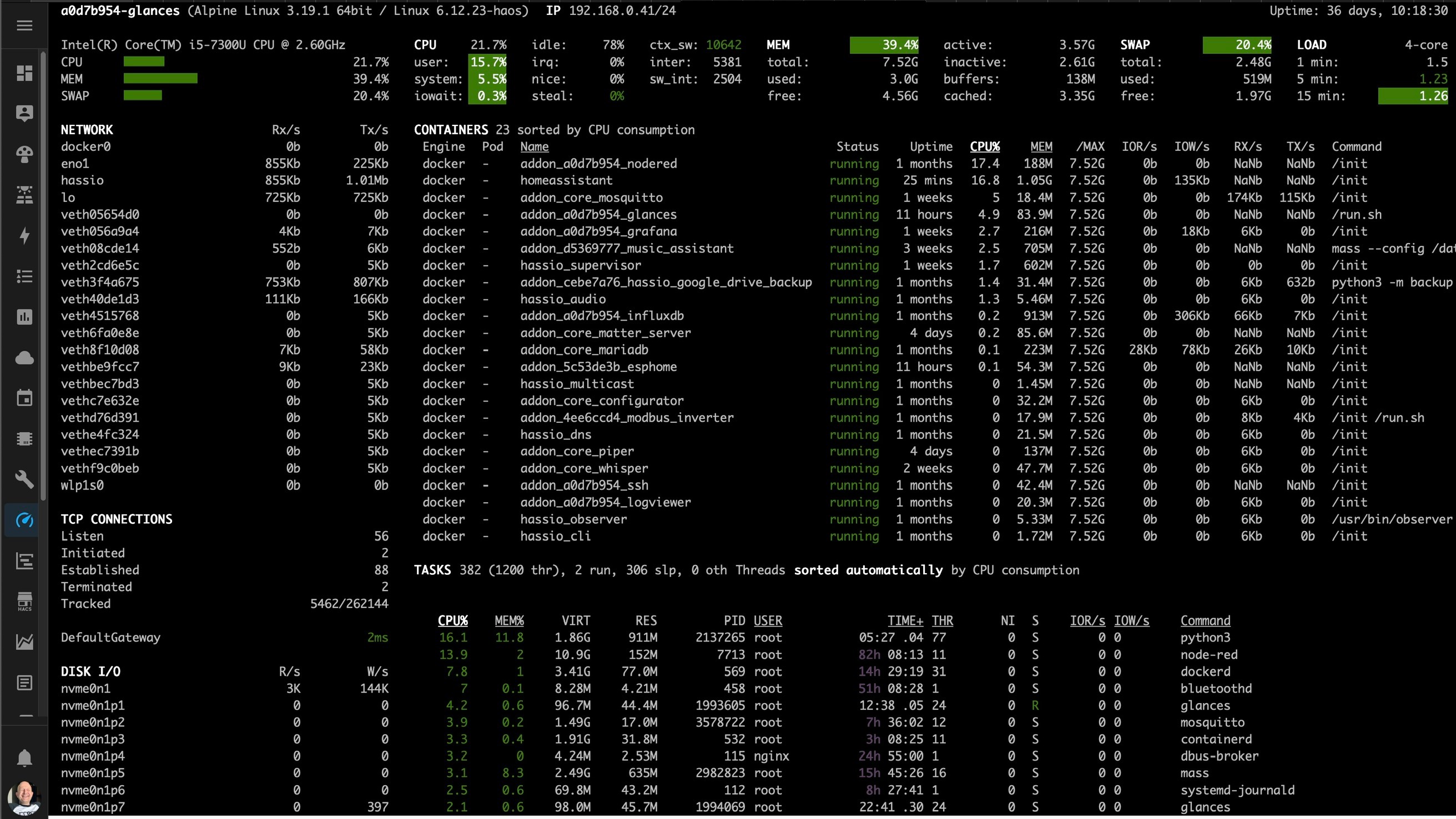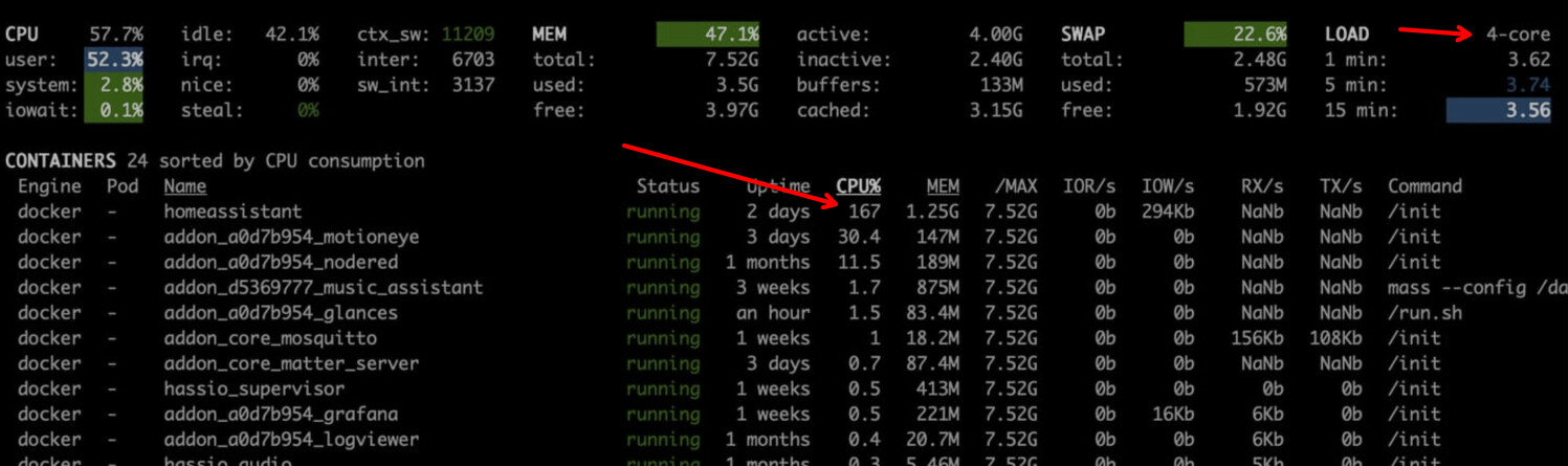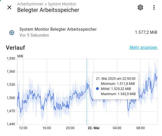 Das reicht nicht, HA ist ja nur ein Docker Container der im HAOS Linux läuft, der Swap wird aber vom HAOS gemanagt, das wird erst wieder auf null gehen, denn Du die ganze Kiste einmal durchstartest.