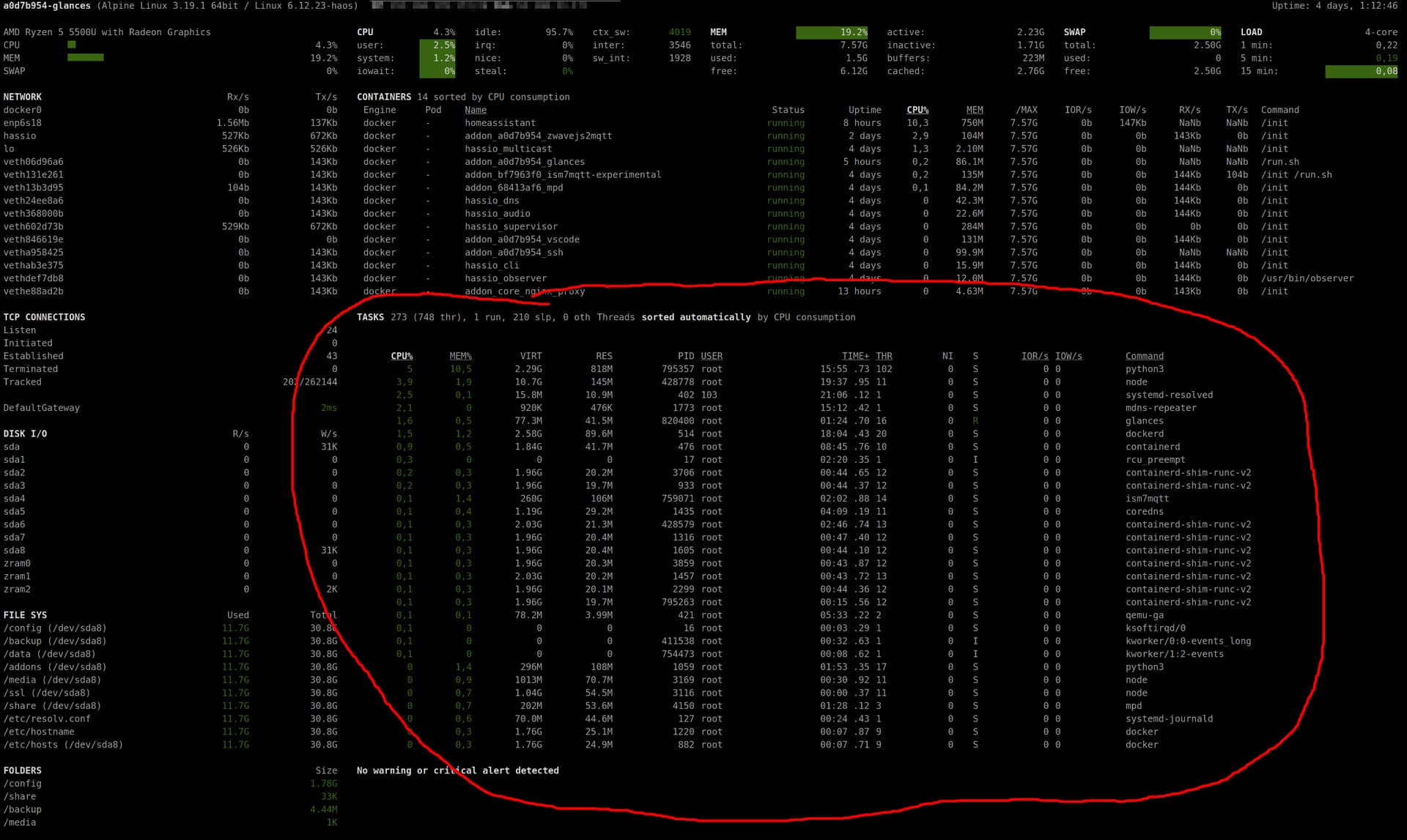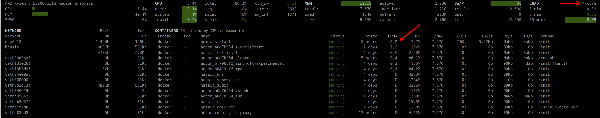 Das bedeutet ja, dass MotionEye “nur” ~ 5 - 10 % an der Gesamtauslastung trägt.