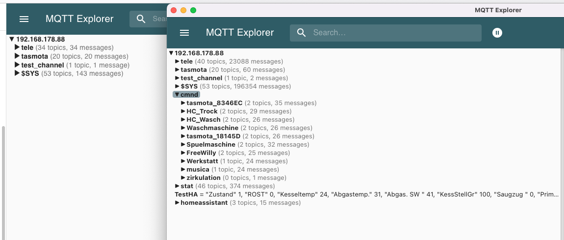 wenn du den MQTT Explorer startest hat er keine alten Daten drin und wird nur das anzeigen was seit dem öffnen gesendet wurde. (und ein paar Topics die retained sind)