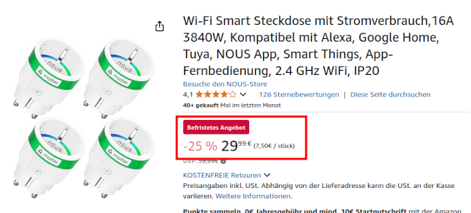 Edit: Der 4-er Pack Nous A1T (Tasmota) liegt aktuell bei € 49,99 und auch die sind recht preisstabil.
