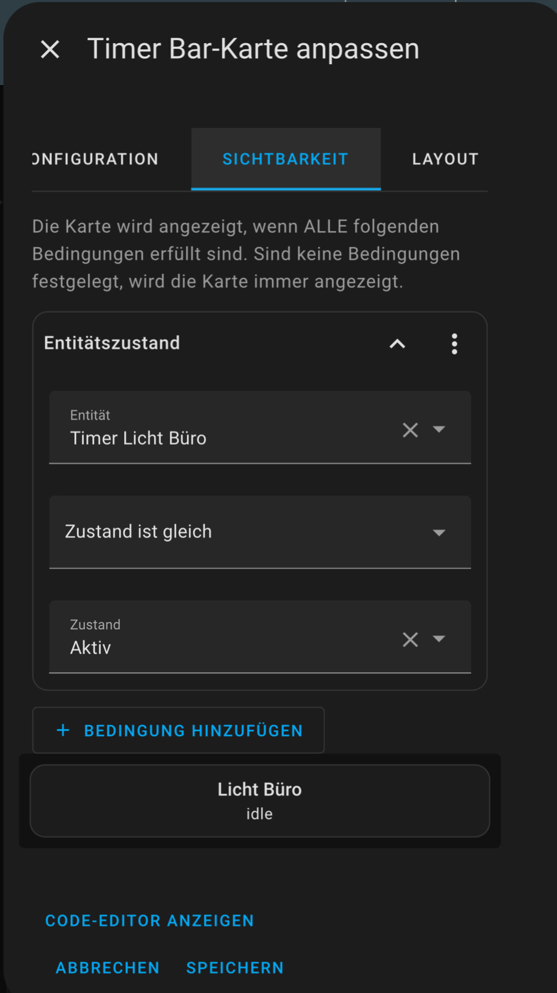 Ich vermute "Sichtbarkeit, Entität “automation Timer” = Zustand = Ein fragt ab ob die Automation eingeschaltet ist und nicht ob der Timer läuft.