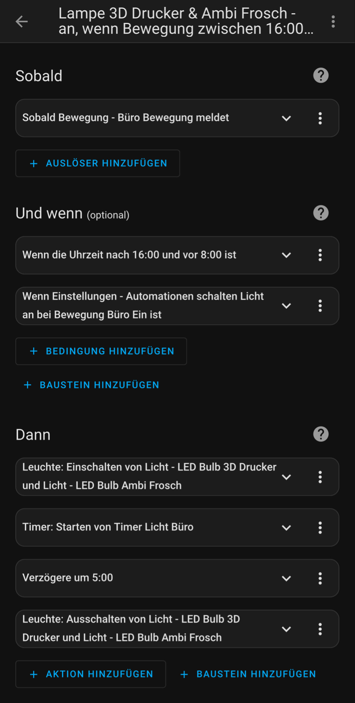 Also Automation mit Trigger Bewegung erkannt, startet einen Timer mit Dauer 2 Minuten (wie werden 2 Minuten in dem Feld Dauer eingegeben?