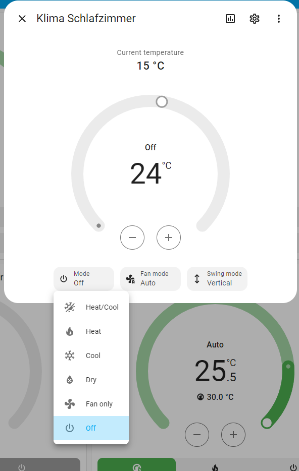 Mich würde mal interessieren, ob Du eine Möglichkeit gefunden hast die Betriebsart und Temperaturvorwahl aus ESPHome heraus, also in der YAML, zu steuern.