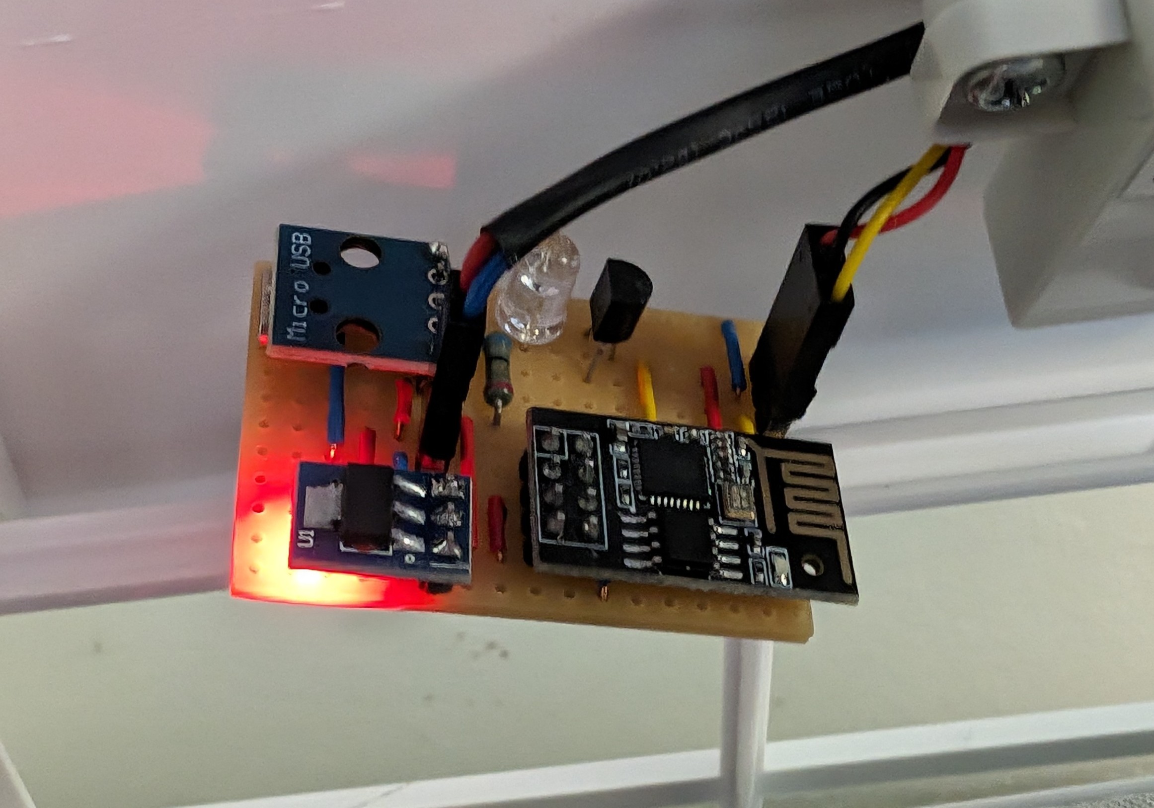 Habe mir eine kleine Platine mit ESP01, DS18B20 und IR LED gelötet und diese in der Klima platziert. Spannung habe ich vom WLAN-Modul abgegriffen.