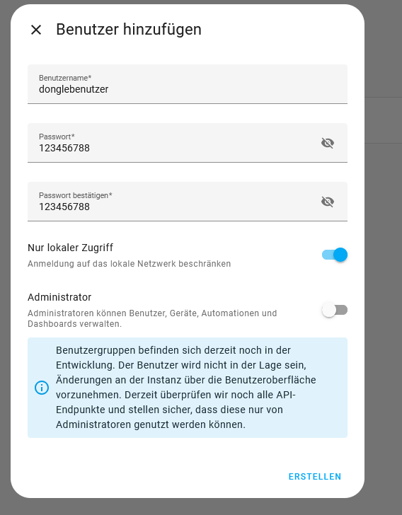 mqttuser ist mein gewählter Benutzername, Benutzer wurde auch von mir in HA angelegt als lokalernutzer.