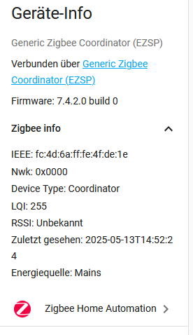 Wobei ich immer wieder sage, wenn man ZHA ohne Probleme nutzen kann und man keine exotischen Geräte hat, die nur mit Z2M funktionieren, kann man auch bei ZHA bleiben.