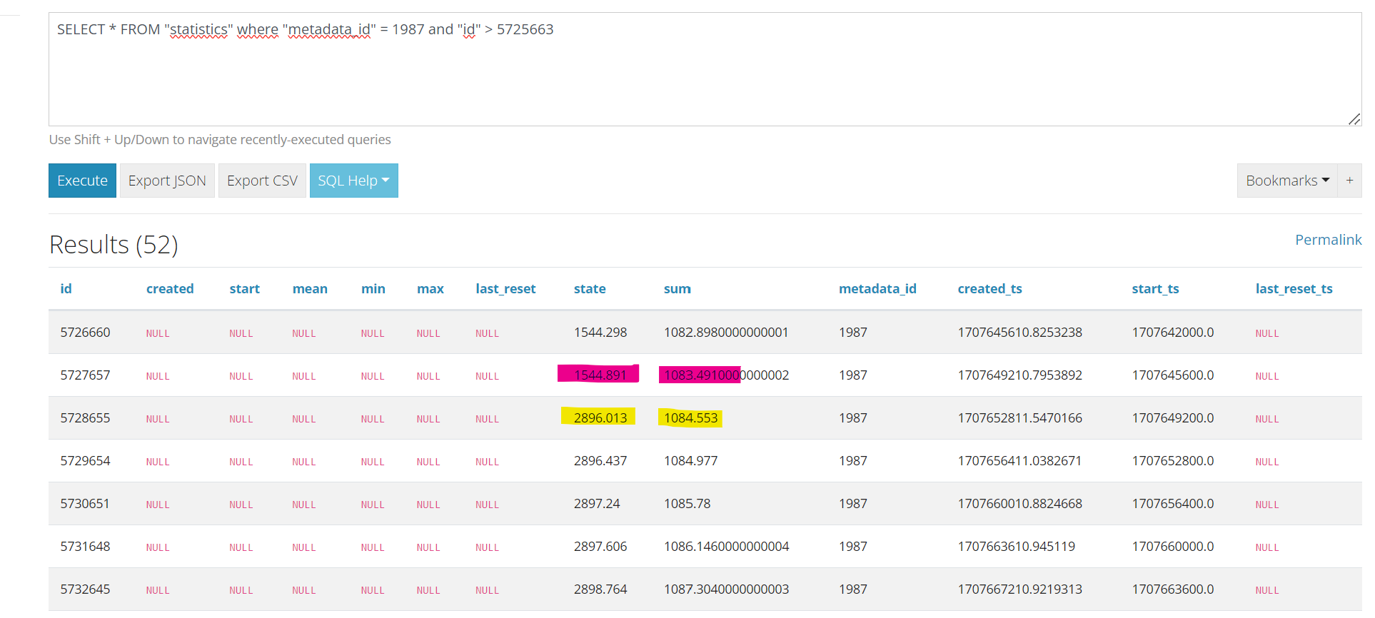 Wenn ich das richtig verstehe, bleibt in der Recorder-Datenbank in den Tabellen “statistics” und “statistics_short_term” das Feld “state” unverändert und das Feld “sum” wird durch die Korrektur in Entwicklung<Statistik geändert?
