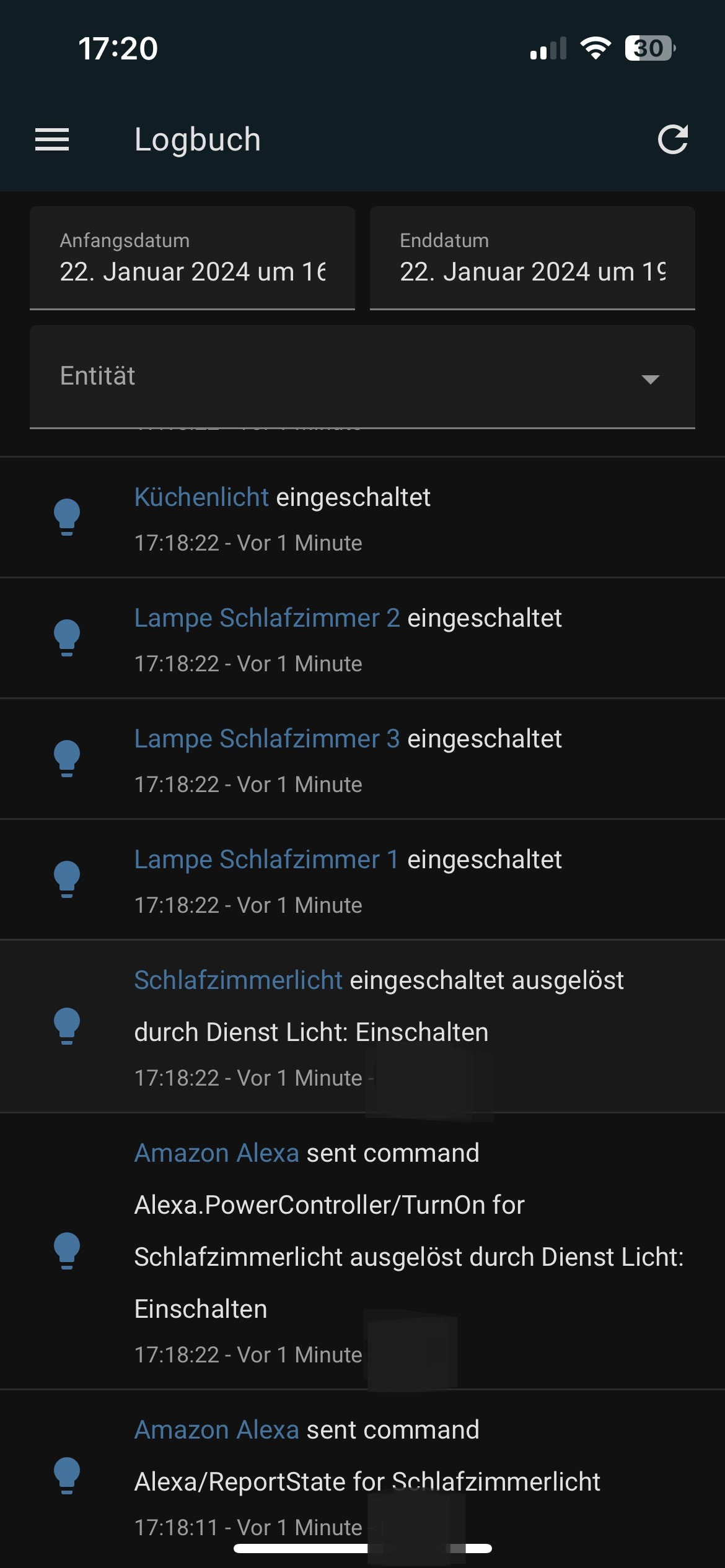 Im HA Logbuch war nur zu sehen, das die Lampe eingeschaltet wurde aber ohne Auslöser.