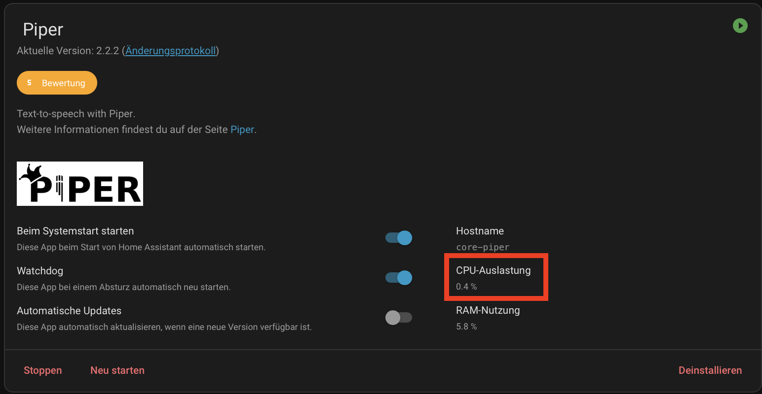Aber mein Prozessor liegt vergleichsweise immer noch recht hoch. Home Assistant sollte ja eigentlich bei 2-3% liegen, befindet sich aber bei 8%.