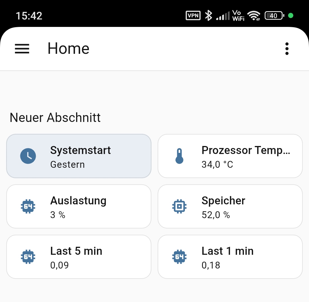 Einen Monitor konnte ich noch nicht anschließen, da mein HA etwas abseits neben dem Router steht. Da muss ich noch eine Verbindung schaffen…