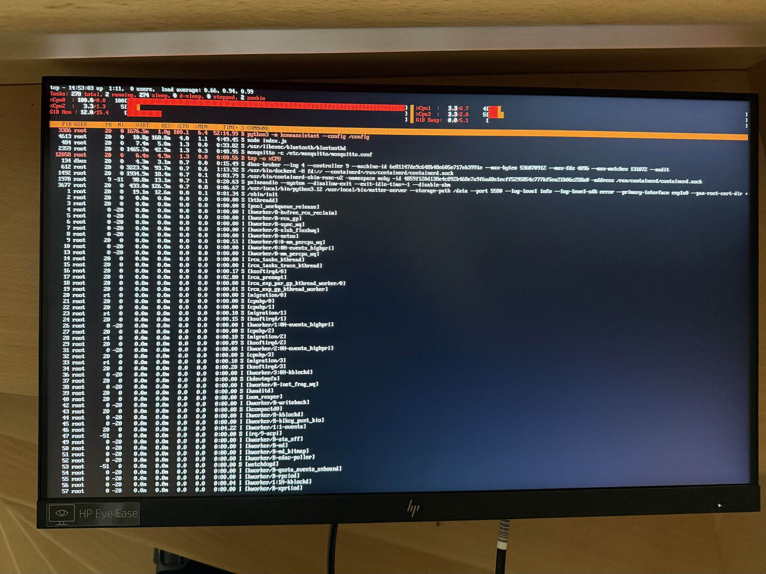 Ich habe schnell mal meinen PC Monitor dran geklemmt und komme auf ein ähnliches “Fehlerbild” wie unter Glances: Homaeassistant → python3 versucht hohe CPU Auslastung