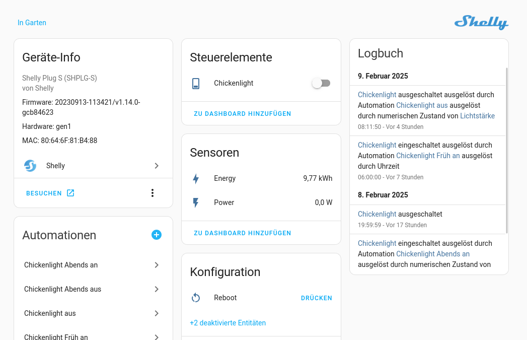 Ich habe die ersten Geräte in HA eingefügt.Ein paar Shellys und Power Plug Steckdosen von LEDVance mit Hilfe von Tuya.
