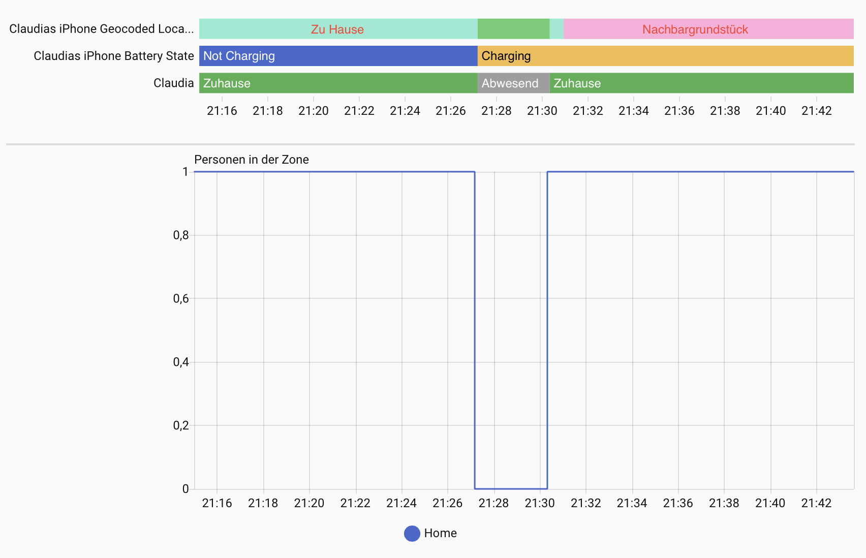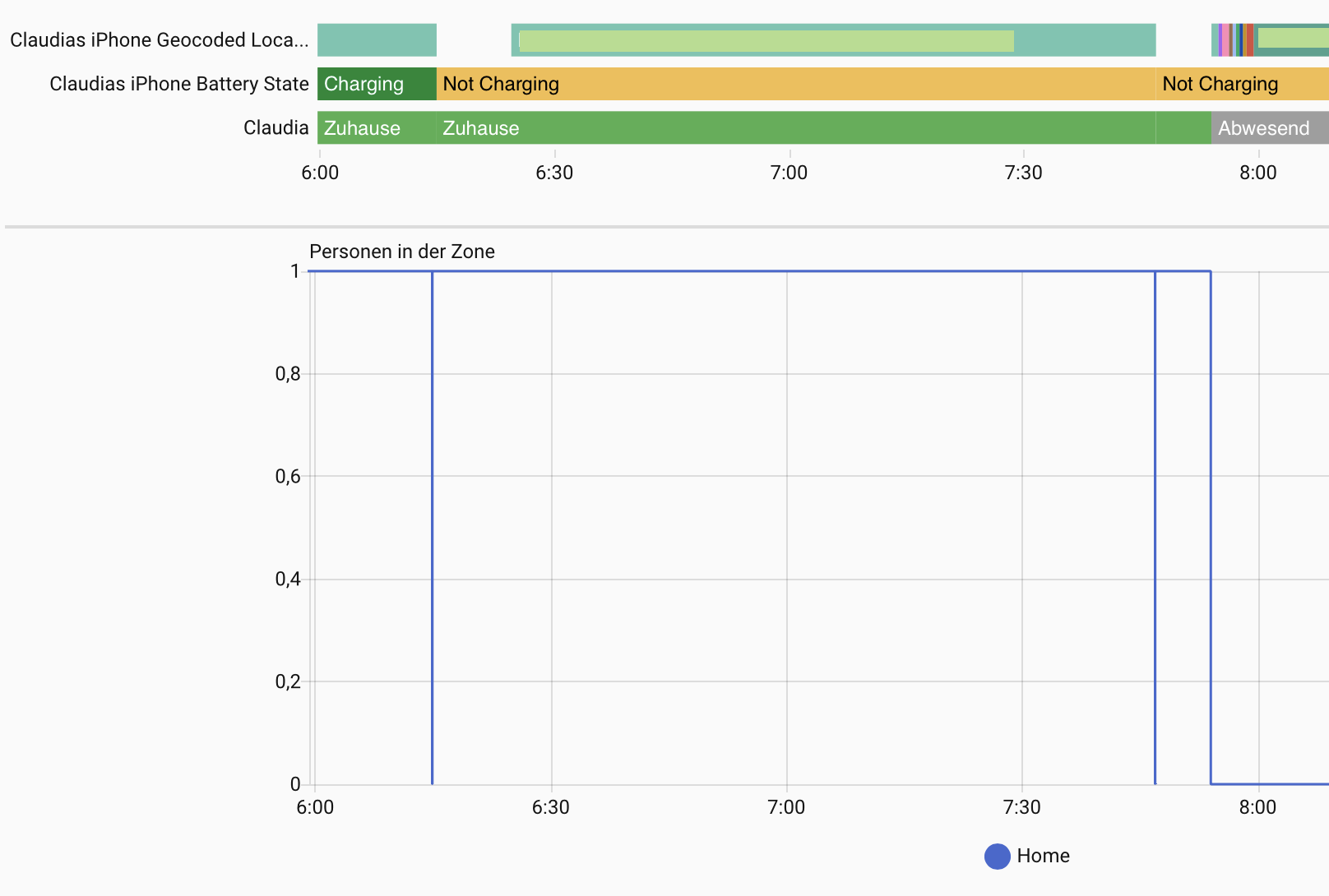 Ein Wechsel im Status sensor.claudias_iphone_battery_state scheint HA auch nicht zu gefallen. Die Zeiten passen perfekt zusammen.