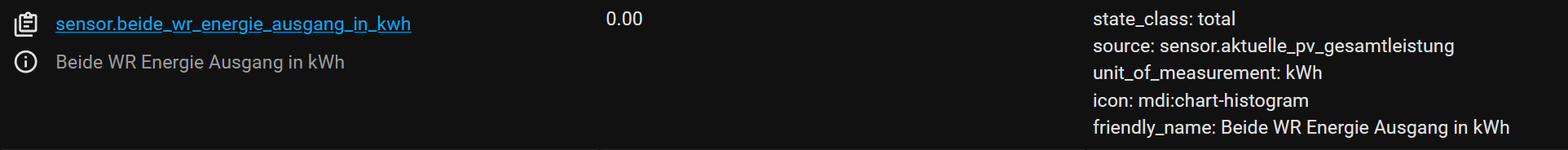 Bei dem Sensor handelt es sich um einen selbsterstellten Helfer - so wie bei allen im Energy Dashboard hinterlegten Sensoren. Erstellt wurde er über die Riemann Funktion und er enthält auch kWh (also Energy). Aber die device_class wurde gar nicht gesetzt. Deswegen bekomme ich die obige Fehlermeldung. Über die Entwicklerwerkzeuge habe ich versucht, die device_class nachträglich über den yaml Code zu hinterlegen. Das hat zwar geklappt, aber es bleibt nicht dauerhaft gespeichert.