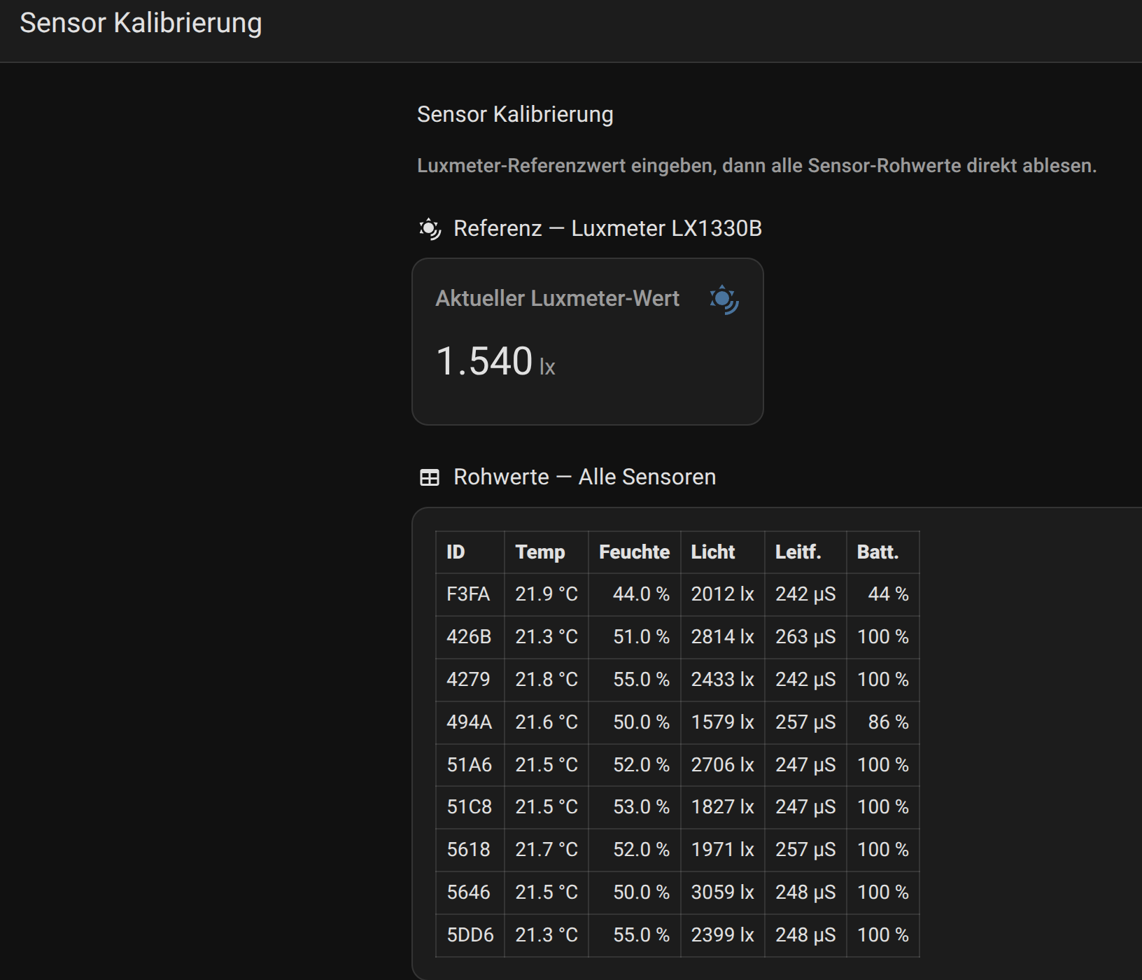 Referenz-Luxmeter besorgt und die Werte verglichen. Das Ergebnis war ernüchternd: die