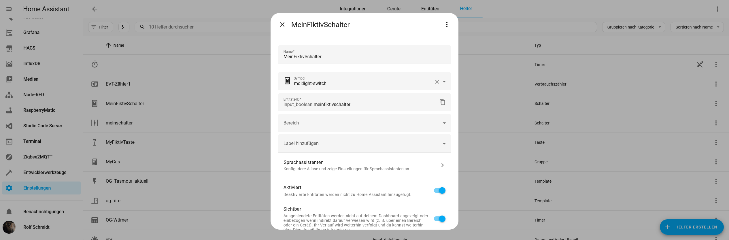 Eigentlich ganz simpel. Der Helfer in HA hat ja den Domain Namen ‘input_boolean.deinname’. Sieht man bei dem letzten Bild.