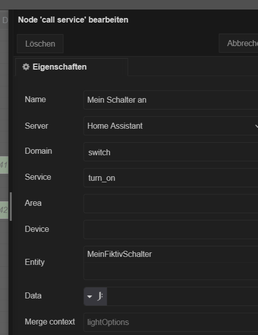 Ich habe mir in HA einen kleinen Helfer-Schalter angelegt, der von Node-Red ein- und ausgeschaltet werden soll. Dazu dienen zwei Injectnodes, die jeweils true oder false auf eine Switchnode geben. Am jeweiligen Ausgang hängen zwei Call Service-Nodes, die die Entität des Helfer-Schalters beinhaltet. Also sollte der Schalter doch bewegt werden können. Nöööö……
