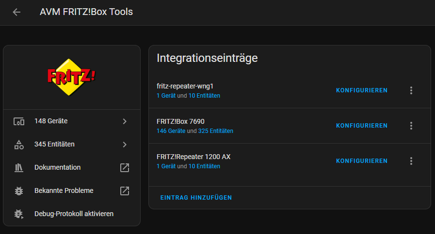 bin noch relativ frisch bei Homeassistant, und habe neulich meine neue Fritzbox samt zweier Repeater hinzugefügt.