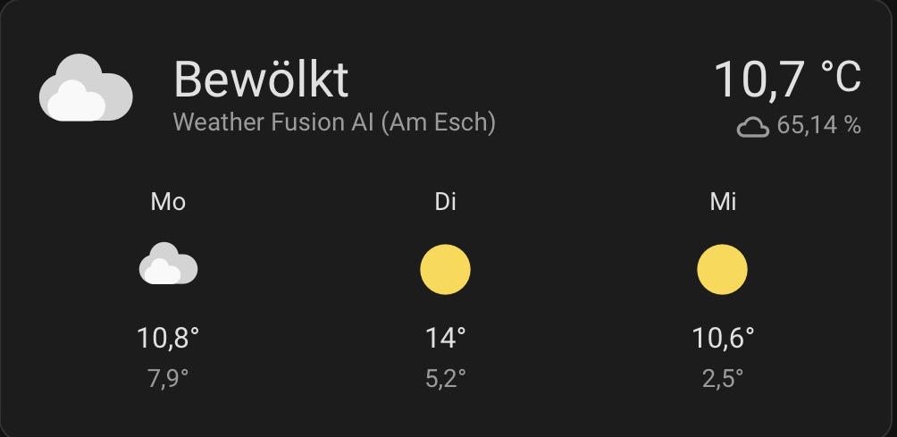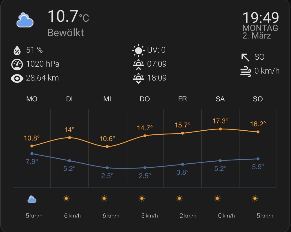 Sicher werden Fragen kommen, wie man ML weather am besten anzeigt, hier ein paar Vorschläge:
