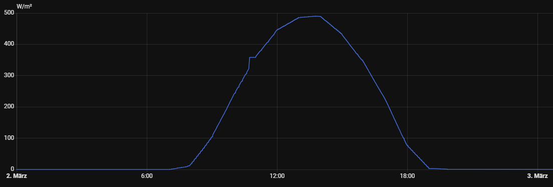 Wenn man sich einmal einen Lux->W/m2-Sensor im Graph einem korrekten Pyranometer-Sensor vergleicht bekommt man die Kriese!