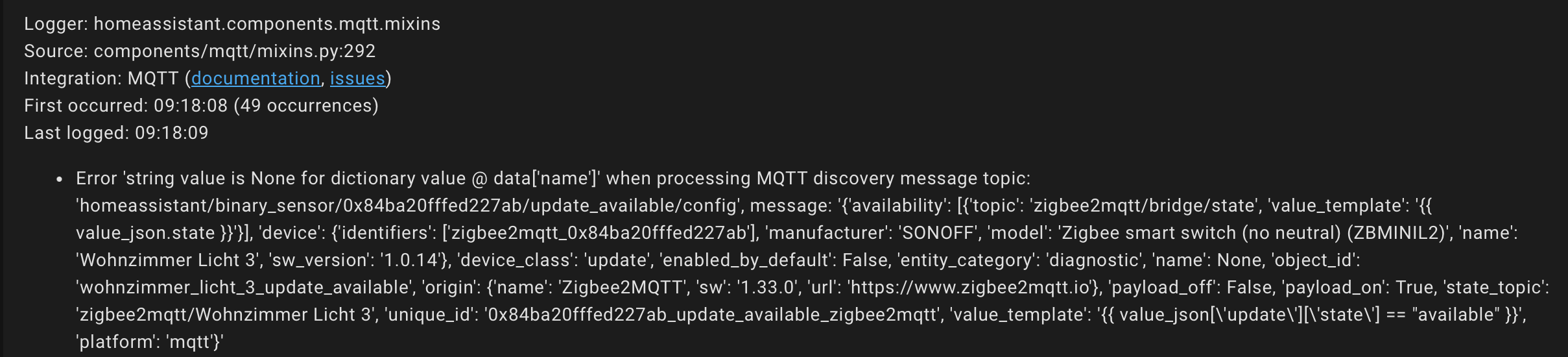 sämtliche meiner mit Zigbee2MQTT eingebundene Sensoren (Steckdosen, Schalter und Lampen) sind ohne Bezeichnung. In der Applikation Zigbee2MQTT sind die Bezeichnungen noch korrekt vorhanden. Jedoch auf meinen Dashboards nicht mehr und ich kann diese auch nicht mehr auswählen.